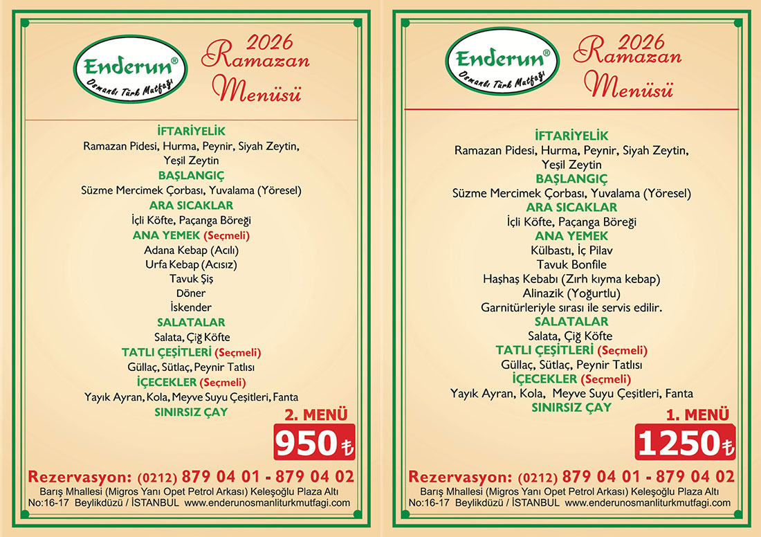 İstanbul’un seçkin semti Beylikdüzü’nde oluşturduğumuz nezih aile ortamı, kaliteli hizmet ve hijyenik çalışma şartlarıyla işletmeciliğimize başlarken, Enderun Osmanlı Türk Mutfağı olarak kebap ve Osmanlı kültürüne özgü çeşitliliğimizle fark yaratıyoruz.